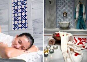 Experience a Hamam, a traditional body cleansing ritual, for a romantic treat. It involves a sauna, shock shower, foam massage, and body scrub.