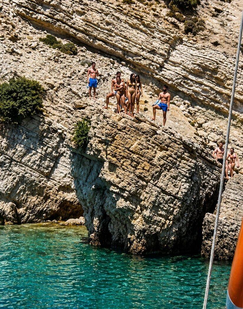 At the end of the tour, the boat crew will entertain you with a fun pirate-themed animation. You can pose in front of the pirate flag and dance to traditional Greek music. Your time spent amidst the unique views of the Aegean Sea will be unforgettable.