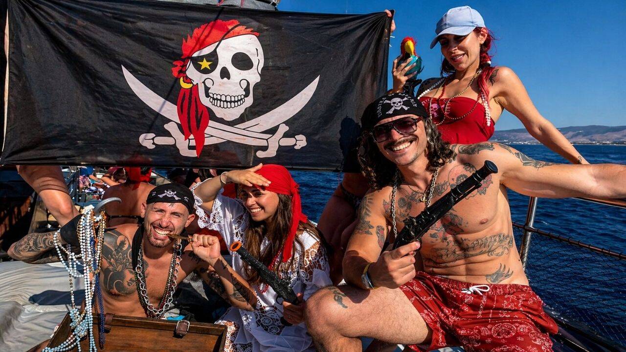 You can dress up in these and take photos in front of the pirate flag to capture memories of your boat tour. You’ll also have the chance to dance to traditional Greek music.