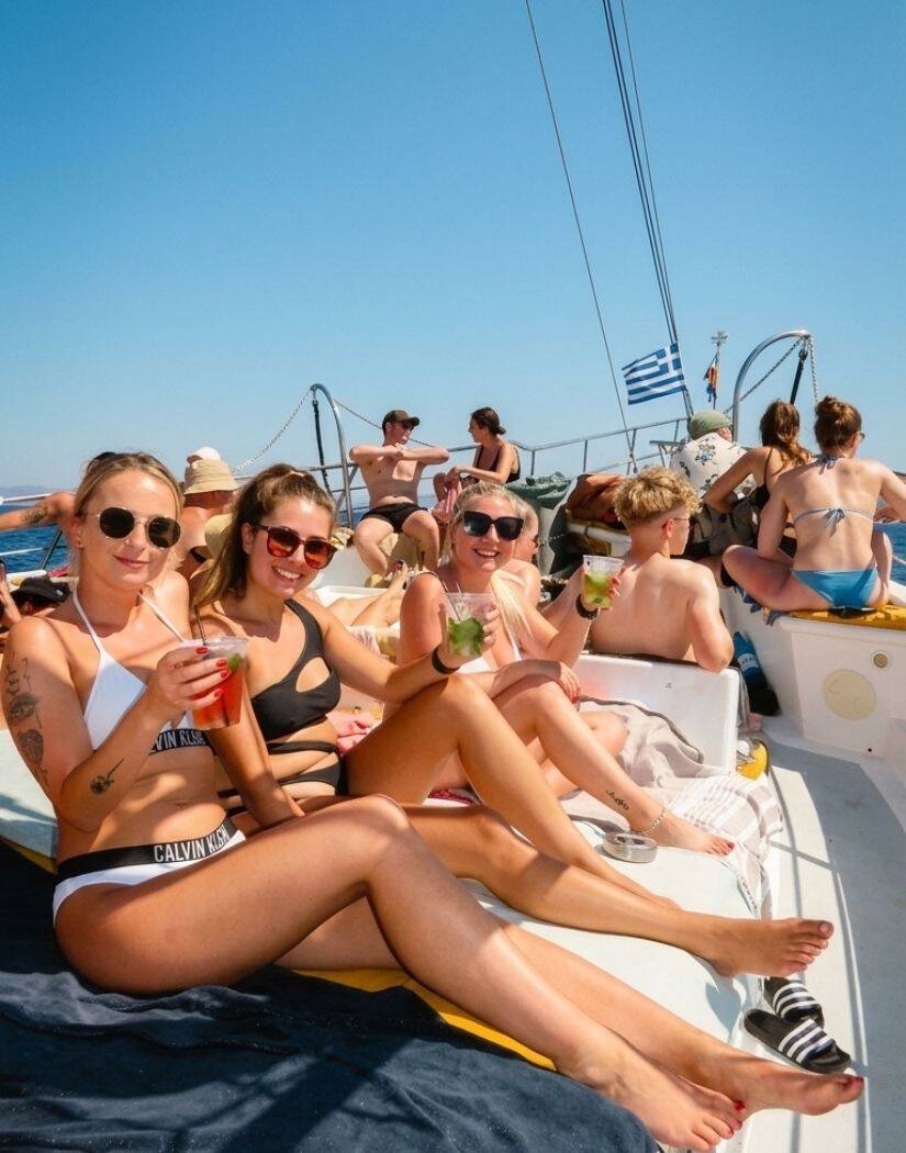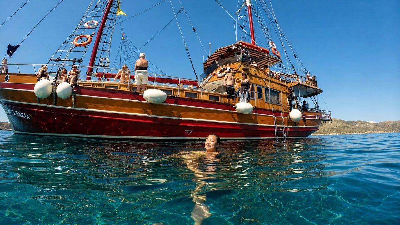 Santa Maria is an 80-foot wooden boat, and it departs from the Kos harbor at 10:00 AM. If you arrive early, you will have the chance to take your preferred spot.