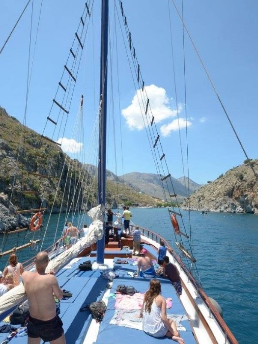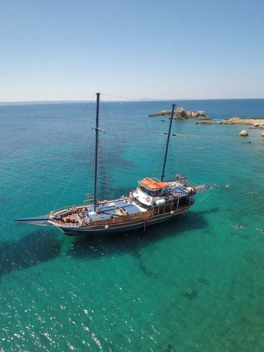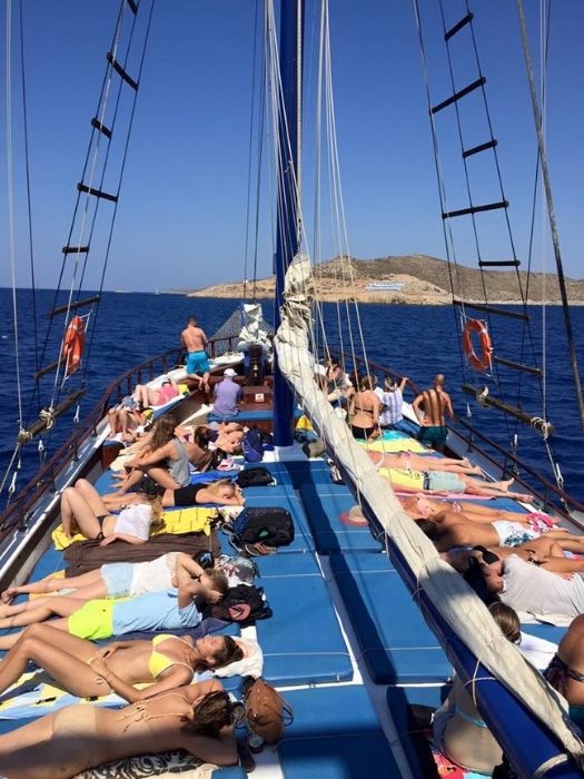 3 island cruise is departing promptly at 10:00 AM. Meeting point is the Kos port. Early bird gets the worm so it’s better to arrive early to get the best spots on the boat. As you step onto the boat, friendly crew will greet you on board.