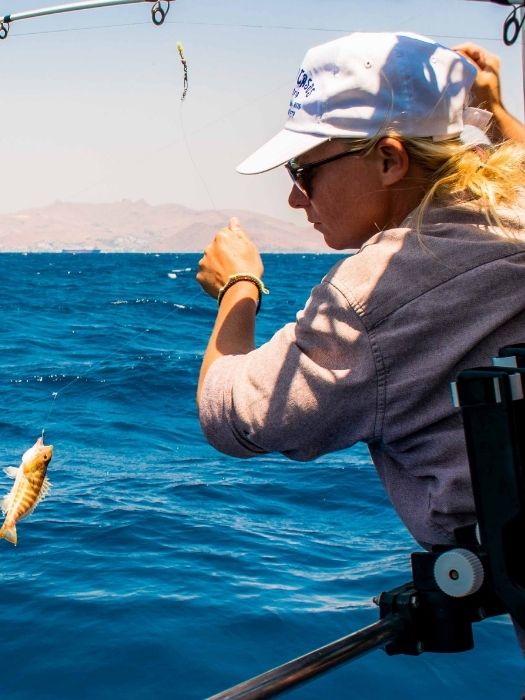 Although there are no certainties, you can catch a variety of fish in the fishing trip. Including mullet, sea bream, sea bass, grouper, angler, black scorpion, garfish and swordfish.