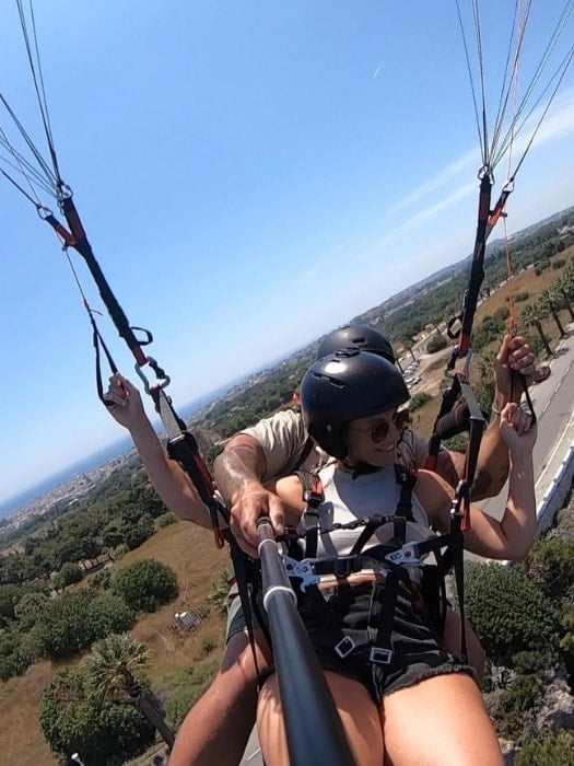 Rhodes paragliding is avaliable for everyone over 14 years old and weigh no more than 120 kilograms. On the flight, you and your pilot will take photos and videos with GoPro cameras. These photos and videos are included in the price of the experience.