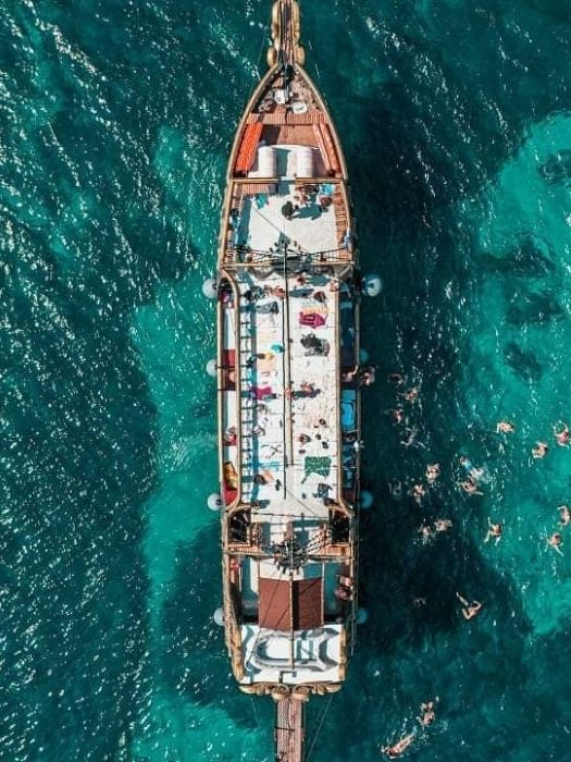 • Enjoy your adventure on the 'Pirate of Kos,' a unique three-decked wooden pirate boat.