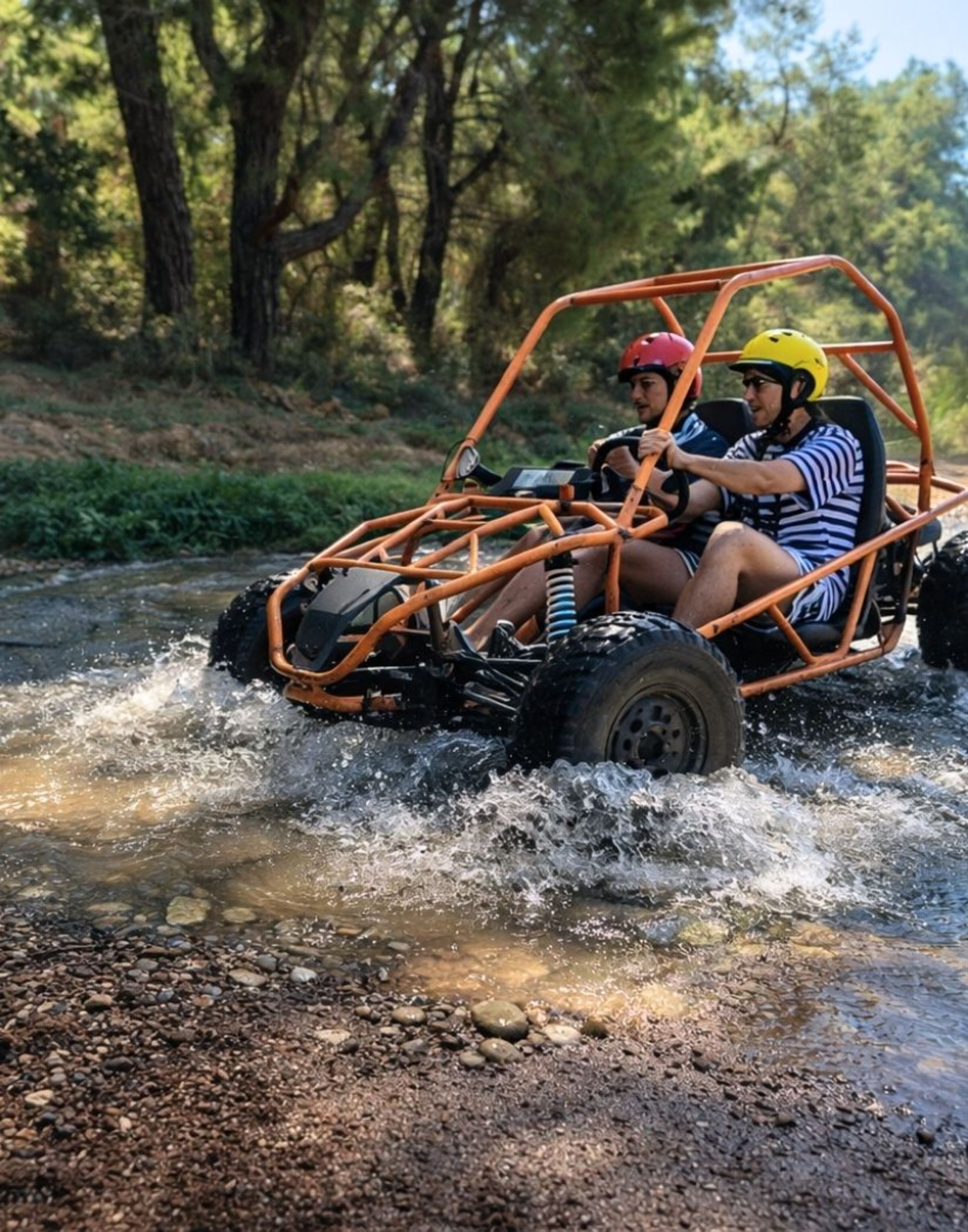 Belek buggy safari is 1hour 45 minutes of dusty and muddy experience through rocky trails, forests, and rivers.