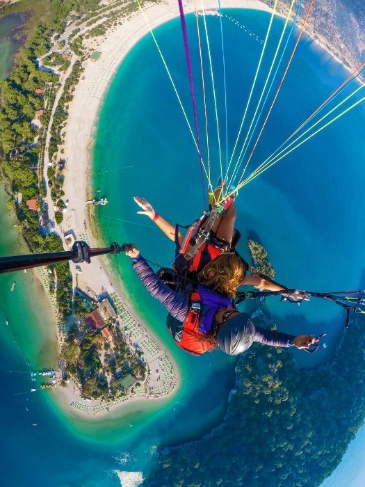 Your tandem flight will see you soar among the thermals, with its view of the far horizon, where the azure Mediterranean meets the cerulean skyline. You can marvel at the waters of the Blue Lagoon, where the saline and the fresh waters meet and as your descent begins you become ever nearer to the soft sands of Olu Deniz beach and your gentle landing over the sunbathers and onlookers. Should you be landing to the sound of applause or not, don’t forget to congratulate yourself on your amazing achievement.