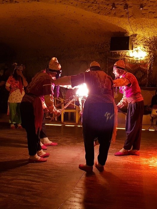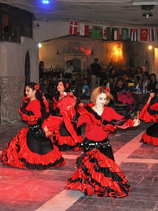 A Turkish Night In Cappadocia consists of folk dance from the region and beyond.  You can also expect to witness everything from humorous dancing to the more exotic.  Even belly dancers more associated with middle eastern dance have roots in Turkey.  Some of the dances you will be shown are likely to be from every corner of Turkey, from the Caucasian dance show to the more exotic belly dancing and the traditional folk dancing of the many Turkish regions.