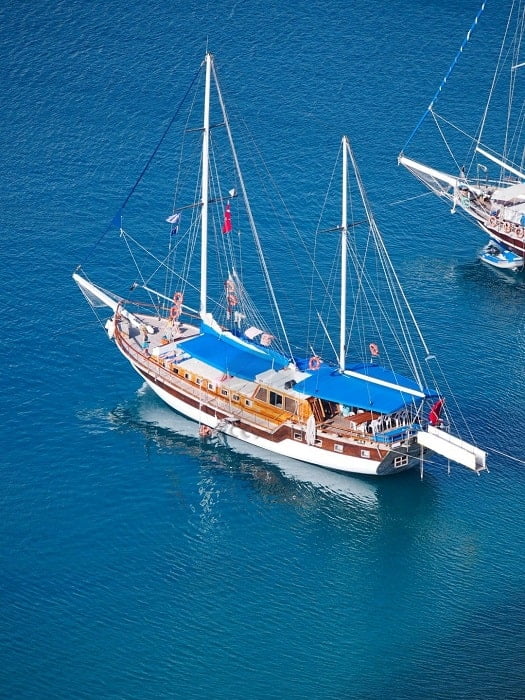 The vista may be reminiscent of a scene from Peter Pan, with its different hues of blue and green for the eyes to feast upon. Your boat will have ample sun beds for you to relax and enjoy the tanning experience. Even if the scenery is not your thing, most people cannot take their eyes off the glorious bay of Fethiye as they cruise beneath the bluest of skies on the dark blue waters of the Mediterranean.