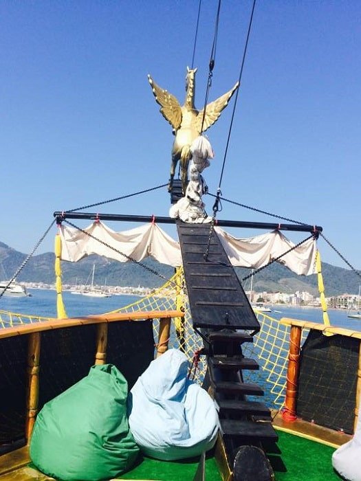 Your pirate adventure starts with a pickup from your Marmaris hotel at around 09:30. This gets you to the harbour and your boat in plenty of time for the 10:00 departure. Once greeted on board you can find your relaxing spot for the day or simply throw yourself into the spirit of things with face painting or bandana wearing. If this is not for you, head on up to the sun deck where you can while away the hours watching the passing of the coastline as you sail along.