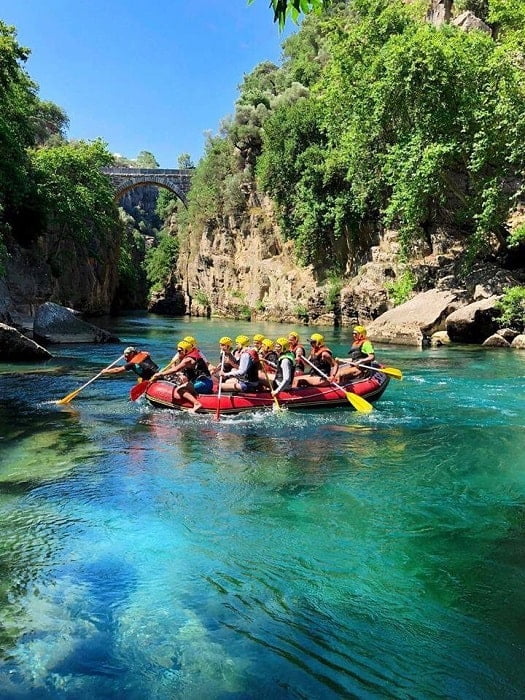 Turkey is fast becoming one of the most popular destinations for rafting and the river at Manavgat is just perfect for novices and experienced rafters alike. This area in Manavgat along the Koprucay River is the most popular river for white water rafting in Turkey.  The rapids are a Grade 2 where most other rapids are a Grade 6.  Because of the gentle nature of the rapids anyone with a basic ability to swim can join this tour. The approximate length of the Koprucay River is 14 kilometres, along some of the most stunning backdrop scenery in the world.