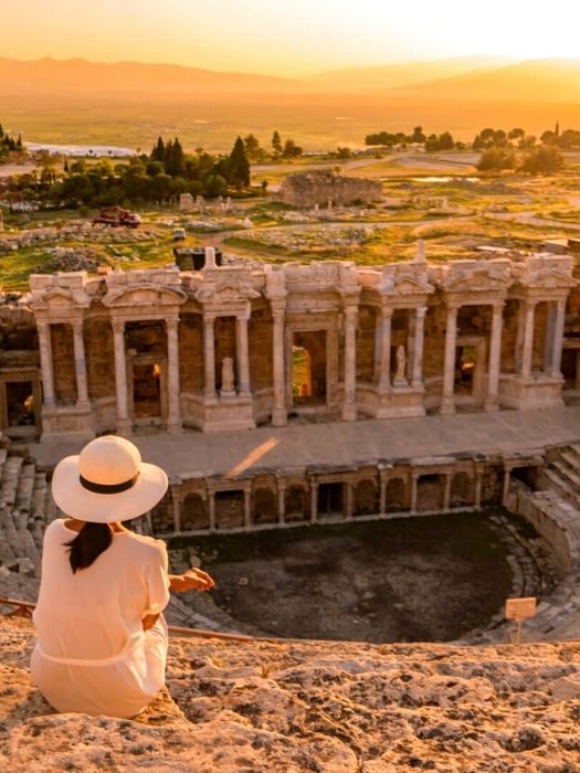 Next, you will arrive at the Pamukkale terraces and begin your ascent to the top where your guide will be waiting for you. You may swim or dip in the rock pools as you climb, fabulous photo opportunities await you here with the distant view of the region, you can quite literally, see for miles.