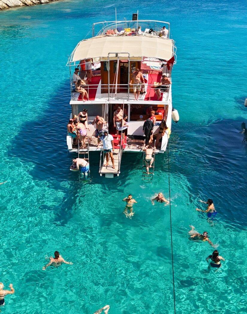 Congratulate yourself on choosing this island tour with its hidden beauty of thermal waters and ancient rocks. With a bar on board your 2 tier boat for refreshment, changing rooms and comfortable shaded areas as well as sunbathing areas, you can move around comfortably in the summer sunshine.