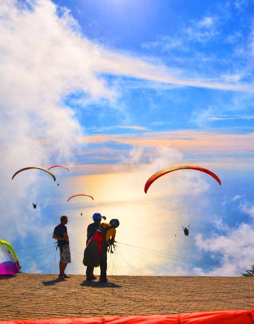 At the base of Baba Dağ you will change to a smaller bus which will take you to the summit of the mountain and the Paragliding Centre at the top. You will be given a safety briefing and instruction from your tandem pilot. Once you are harnessed to your pilot and familiar with the safety instructions, your flight will begin by taking by you both taking a short run from the top, together and into the thermal winds that allow your gentle descent.