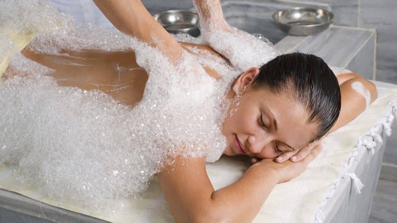 When it is your turn, you will be gently brought to the stone and made comfortable before your body scrub begins. Once the dead skin is removed, a rinse will take place, before the next stage, which will be a foam massage. This is where a large pillow like cloth is filled with air, and a bar of soap creates the foam with which you will be washed. The foam is massaged onto the body for the most relaxing experience, before being rinsed off and you are taken to the relaxation area.