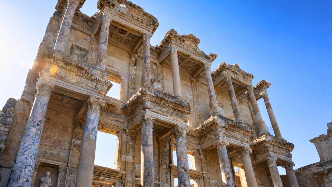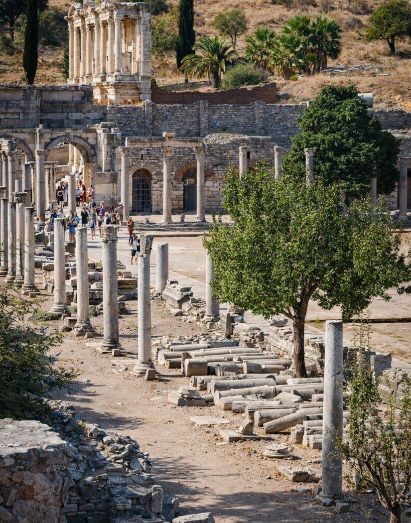 During your guided tour in Ephesus, you’ll have the opportunity to marvel at the grandeur of the Library of Celsus, one of the city’s most iconic landmarks.
