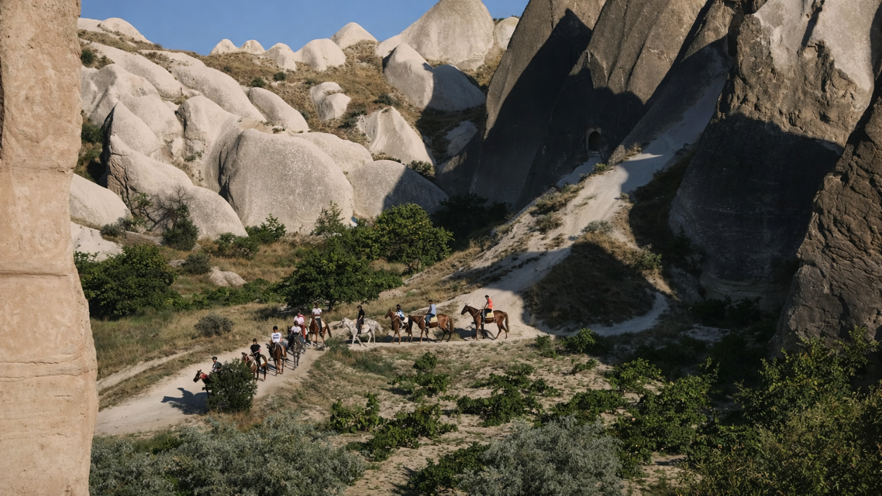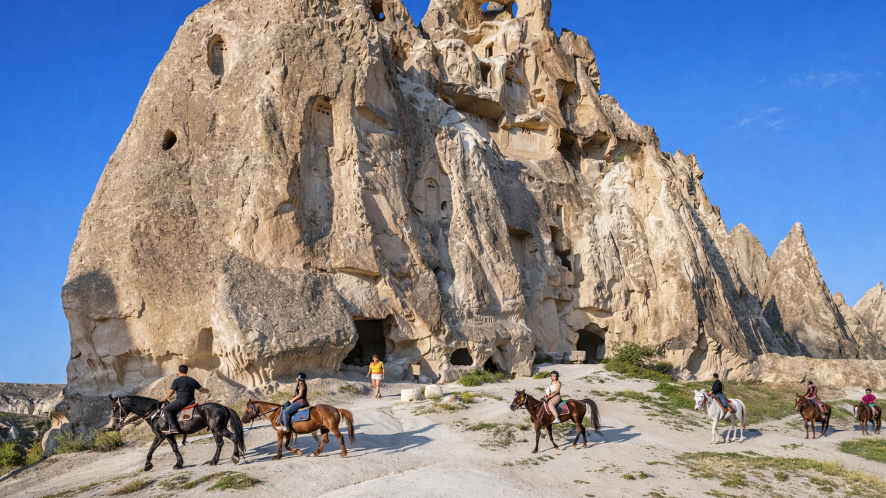 Cappadocia horse safari is a peaceful ride to witness the breathtaking views of the famous rock formations, valleys, and fairy chimneys.