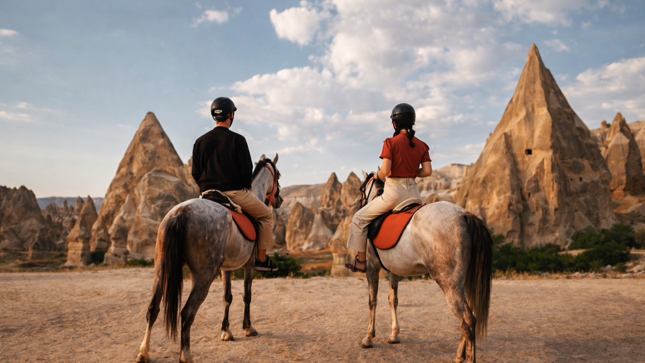 Cost of Cappadocia Horseback Riding is between 35 € and 60 € per person in 2026. Price difference is due to duration of the ride and the time of the day, sunrise and sunset being more expensive.