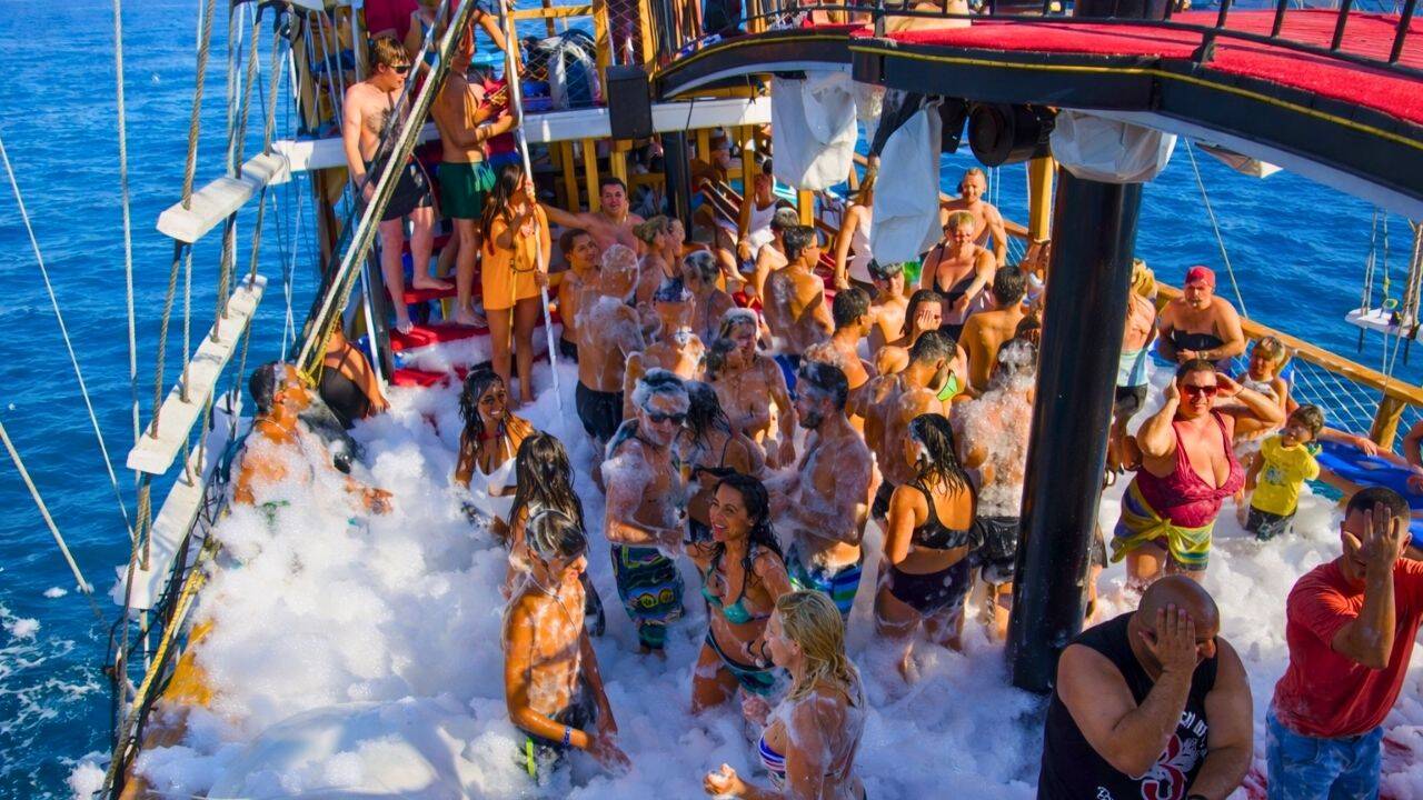Marmaris pirate boat trip is 8-hour all-inclusive excursion with multiple swim breaks, foam party, music and animations.