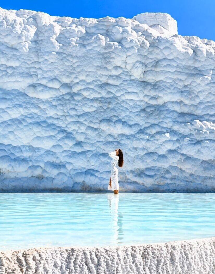 There are some places that you never forget. One of them, mysterious and surprising, is Pamukkale, or Cotton Castle as it is translated from Turkish. It really does feel like it’s covered in snow. These are natural ancient deposits of calcite, travertines. They are a kind of different sized “loggias and balconies” filled with turquoise water. All the mountains in Pamukkale Park are covered with them. It’s worth visiting this natural wonder at least once, you won’t regret it.