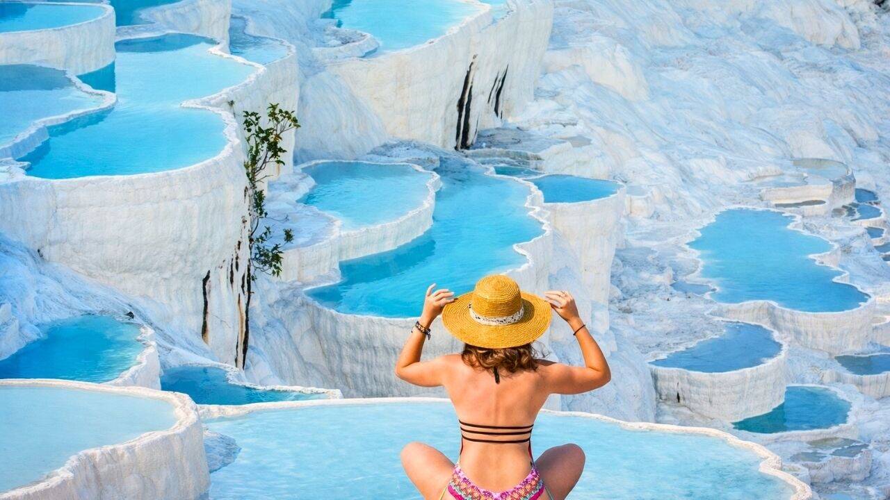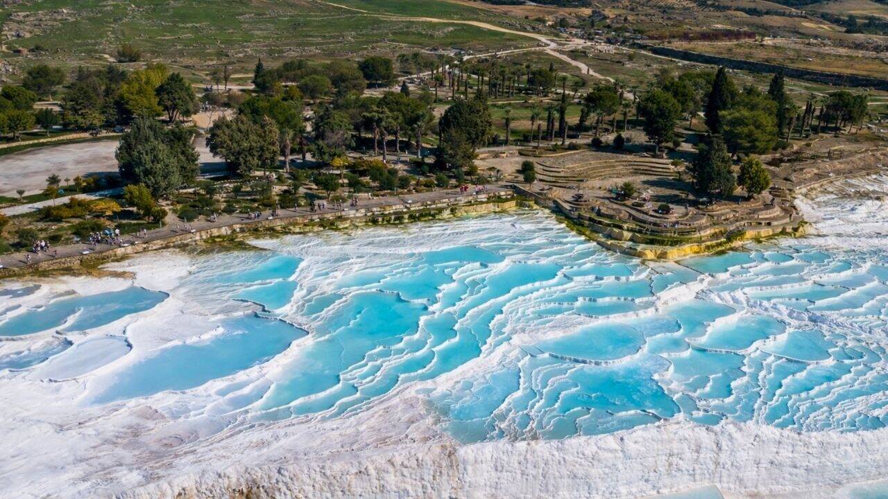 Pamukkale tour from Side is a guided day tour to visit white-travertines, thermal waters & ancient cities.