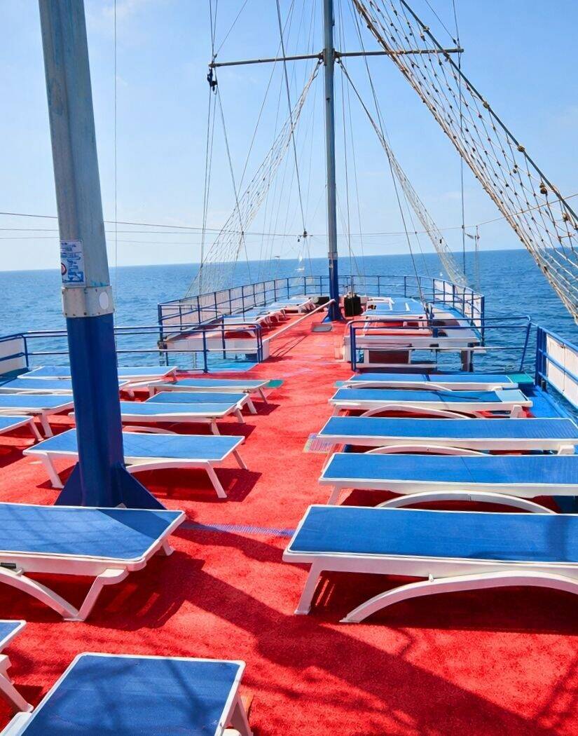 We recommend that you bring sun cream and sunglasses for those moments in between when you can lounge around the deck. Your swim suits and a towel. It would be advisable to bring your camera or mobile phone for those moments that only you can catch, and some money for sundries such as drinks on board.