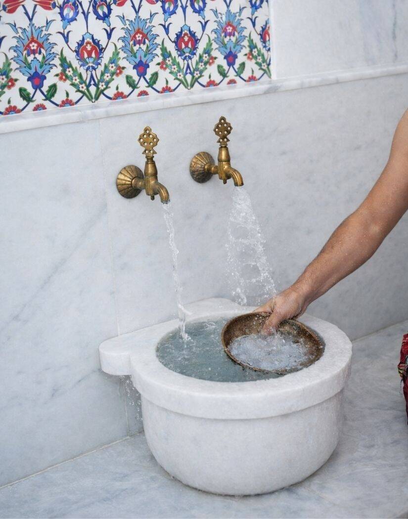 You will then be taken to the Belly Stone, or centre of the Hammam, where a heated marble stone is ready for you to receive your relaxing foam massage. Even while you wait, there are marble seats around the Stone where taps of cooling water and authentic Hammam bowls are available for you to cool yourself, until it is your turn. If there are customers in before you, you will be able to watch the process before it is your turn.
